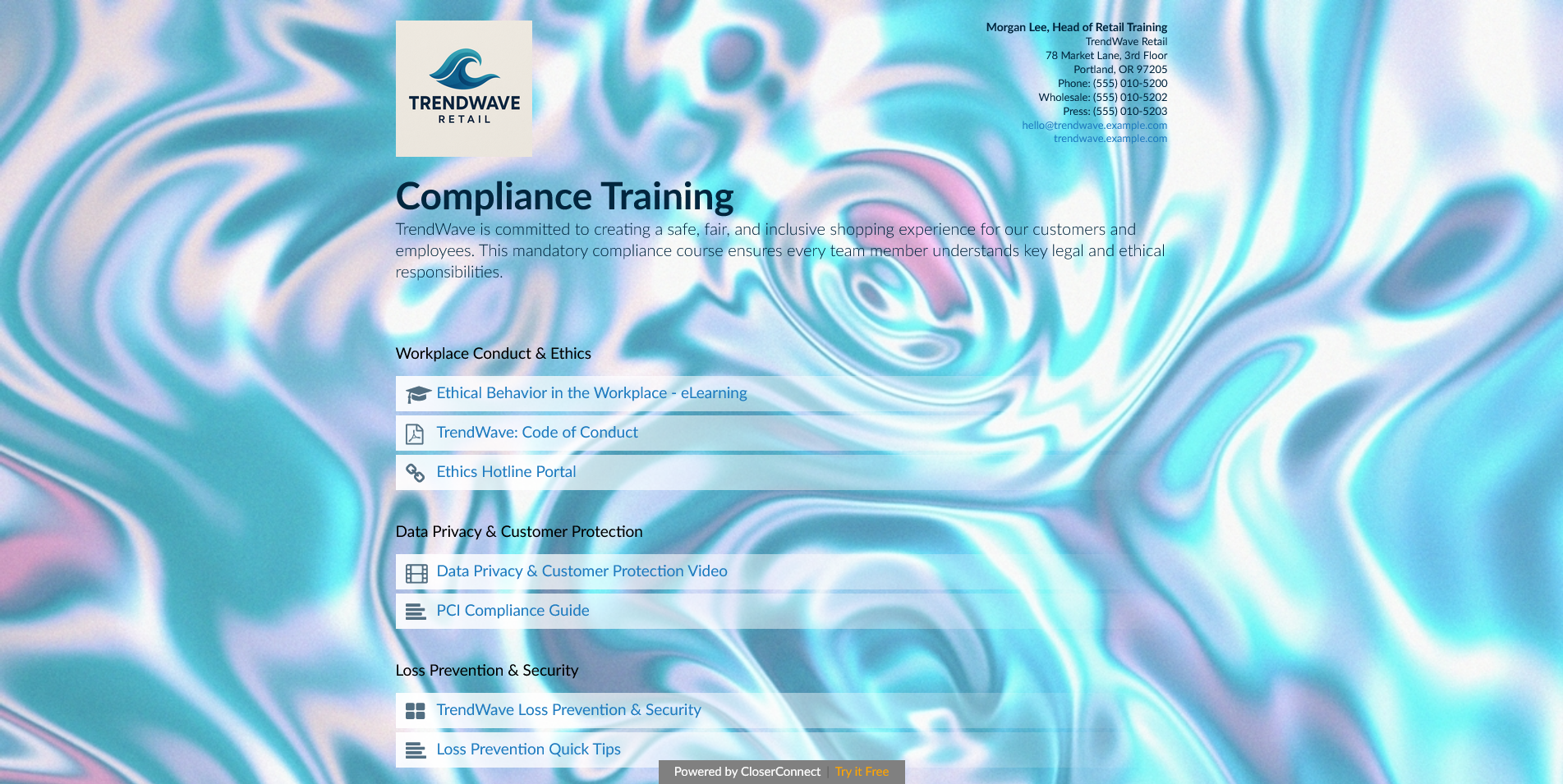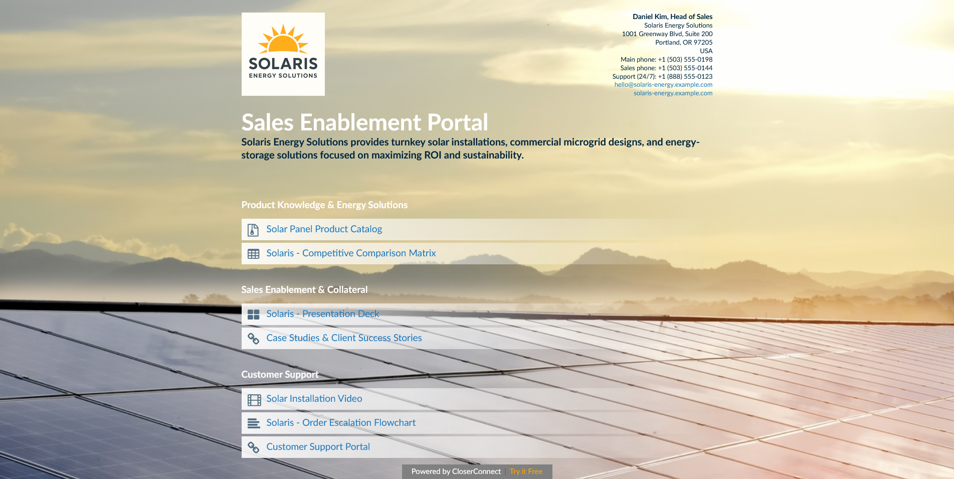 CloserConnect lets you deliver curated sales and learning content, easily updated, on a branded and personalized page that tracks views and completions.